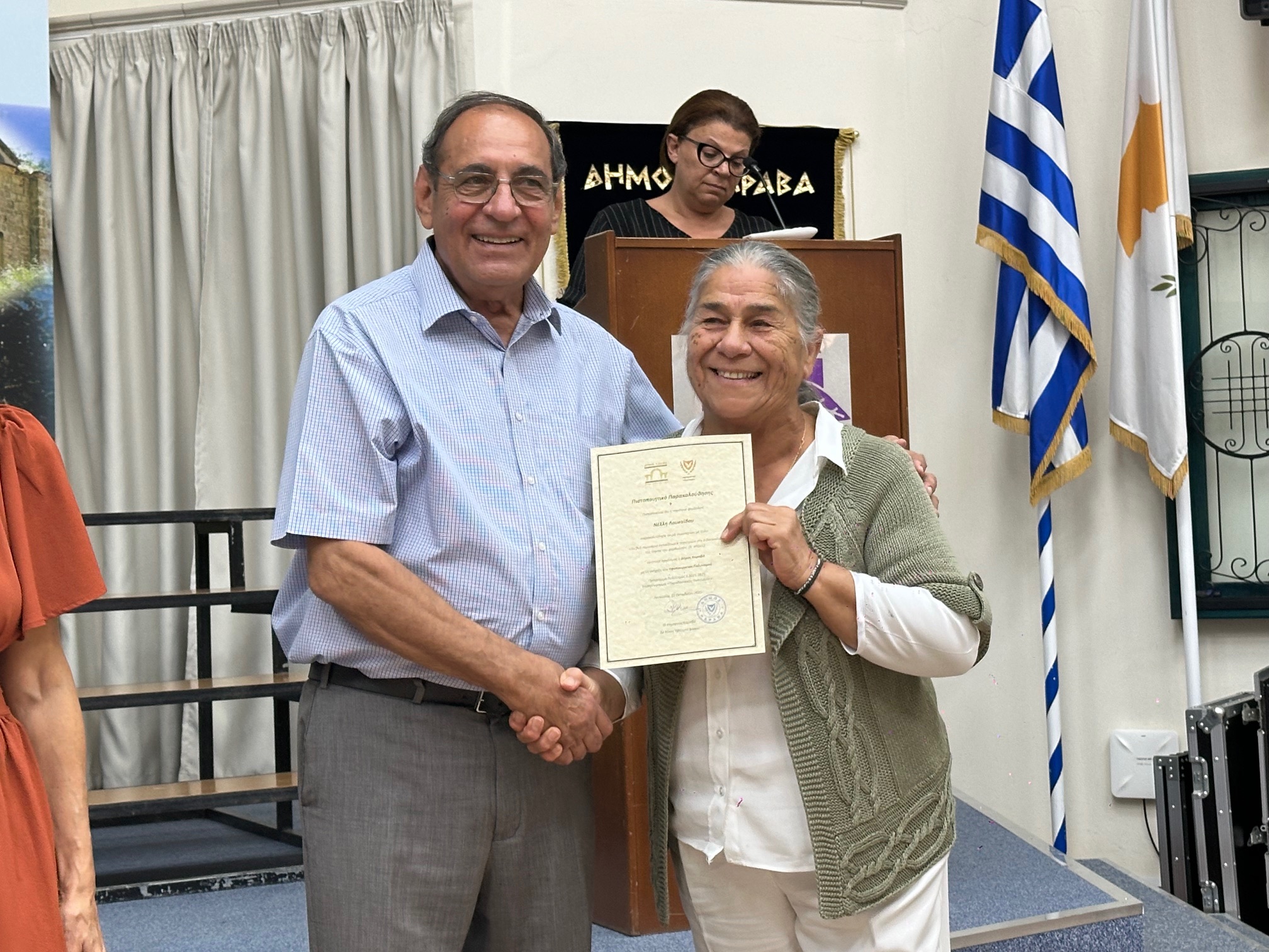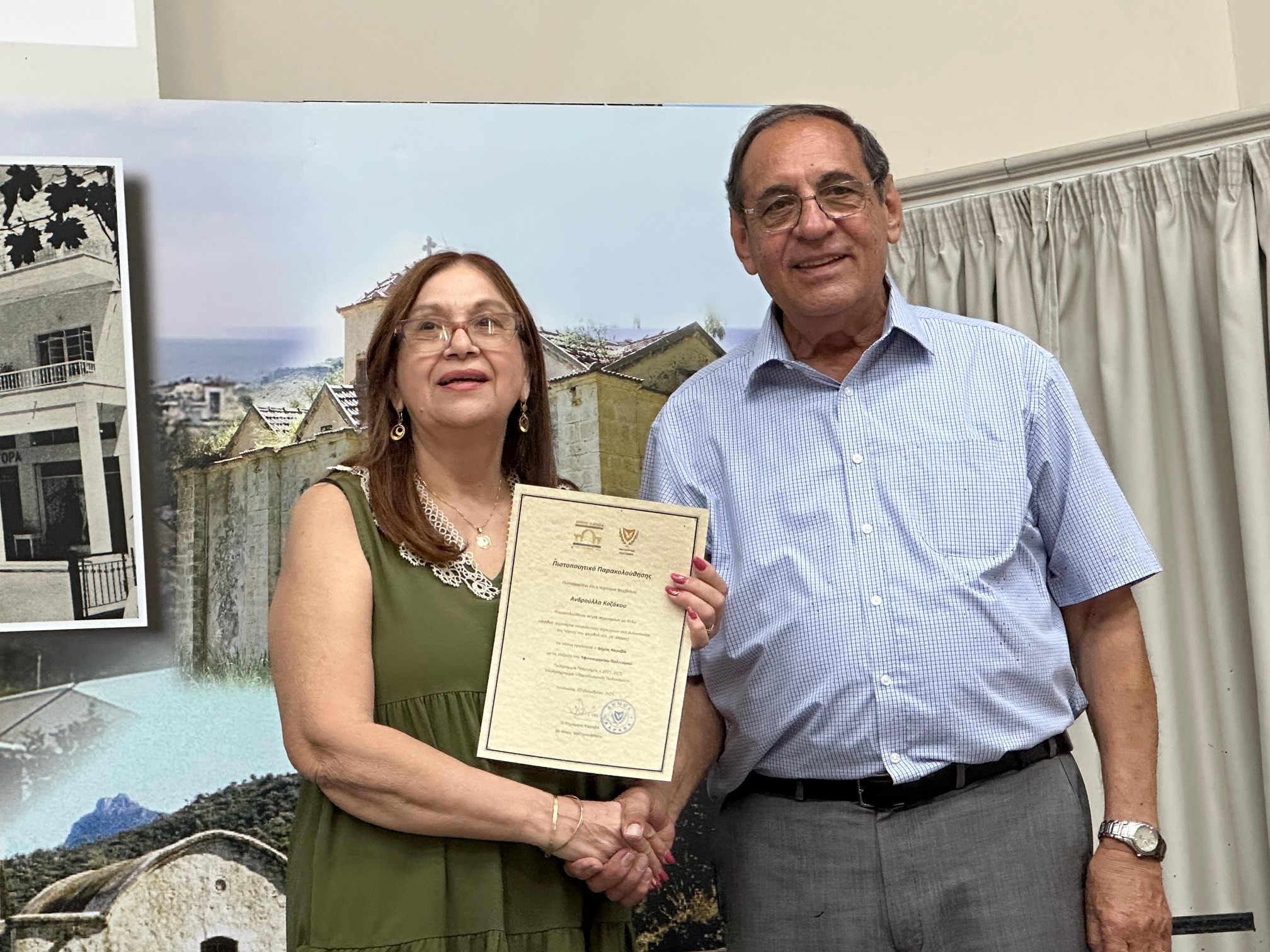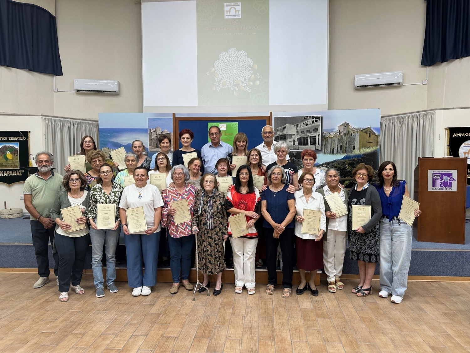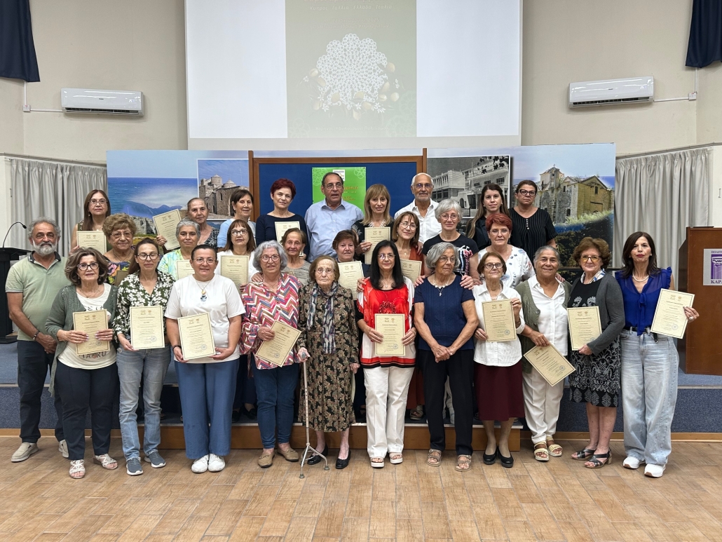 Μετά την ολοκλήρωση των εργασιών, πραγματοποιήθηκε τελετή απονομής Πιστοποιητικών Παρακολούθησης από τον Δήμαρχο Καραβά, Δρ Νίκο Χατζηστεφάνου, στις κυρίες που συμμετείχαν στα σεμιναρίων. Ο Δήμαρχος εξέφρασε θερμές ευχαριστίες προς τις εκπαιδεύτριες, το προσωπικό του Δήμου και όλους όσοι συνέβαλαν στην επιτυχή διοργάνωση, επισημαίνοντας τη σημασία της συλλογικής προσπάθειας για τη διατήρηση της πολιτιστικής μας κληρονομιάς.