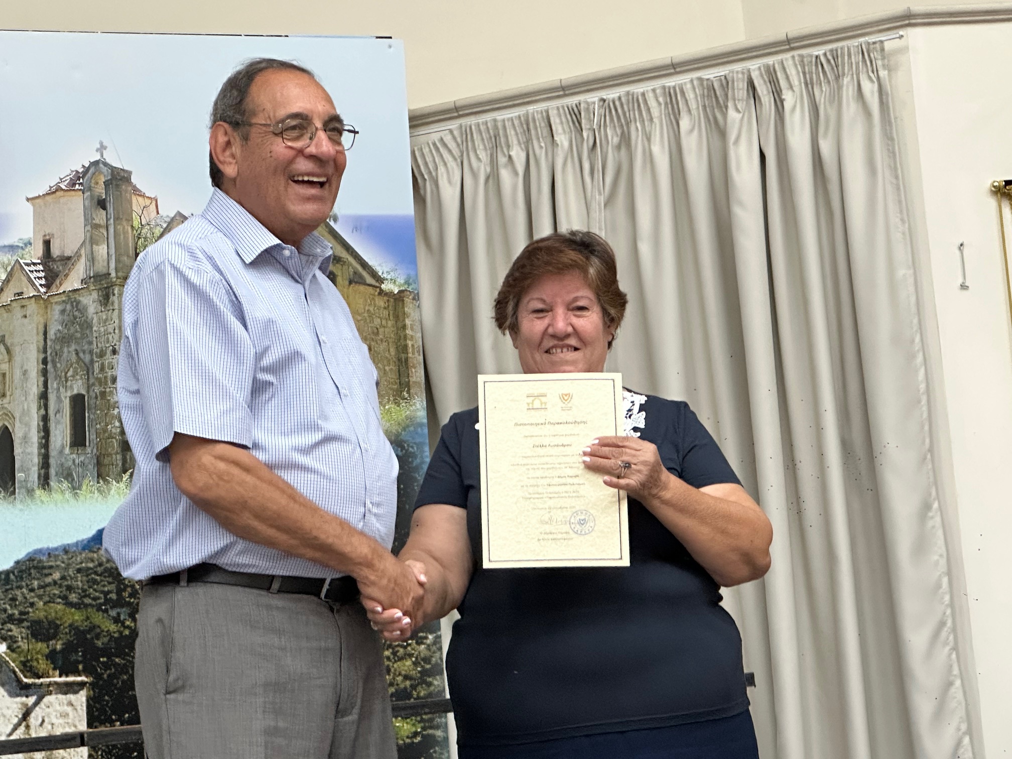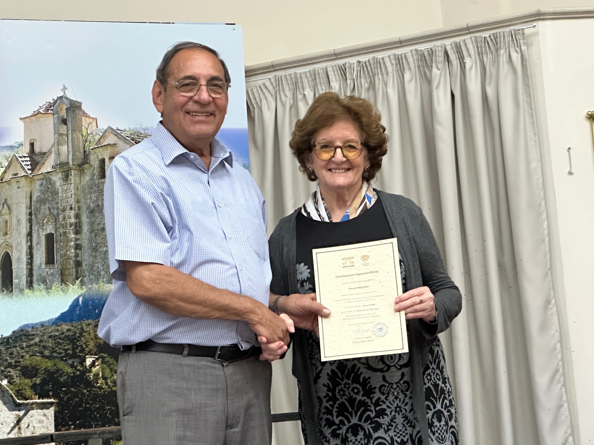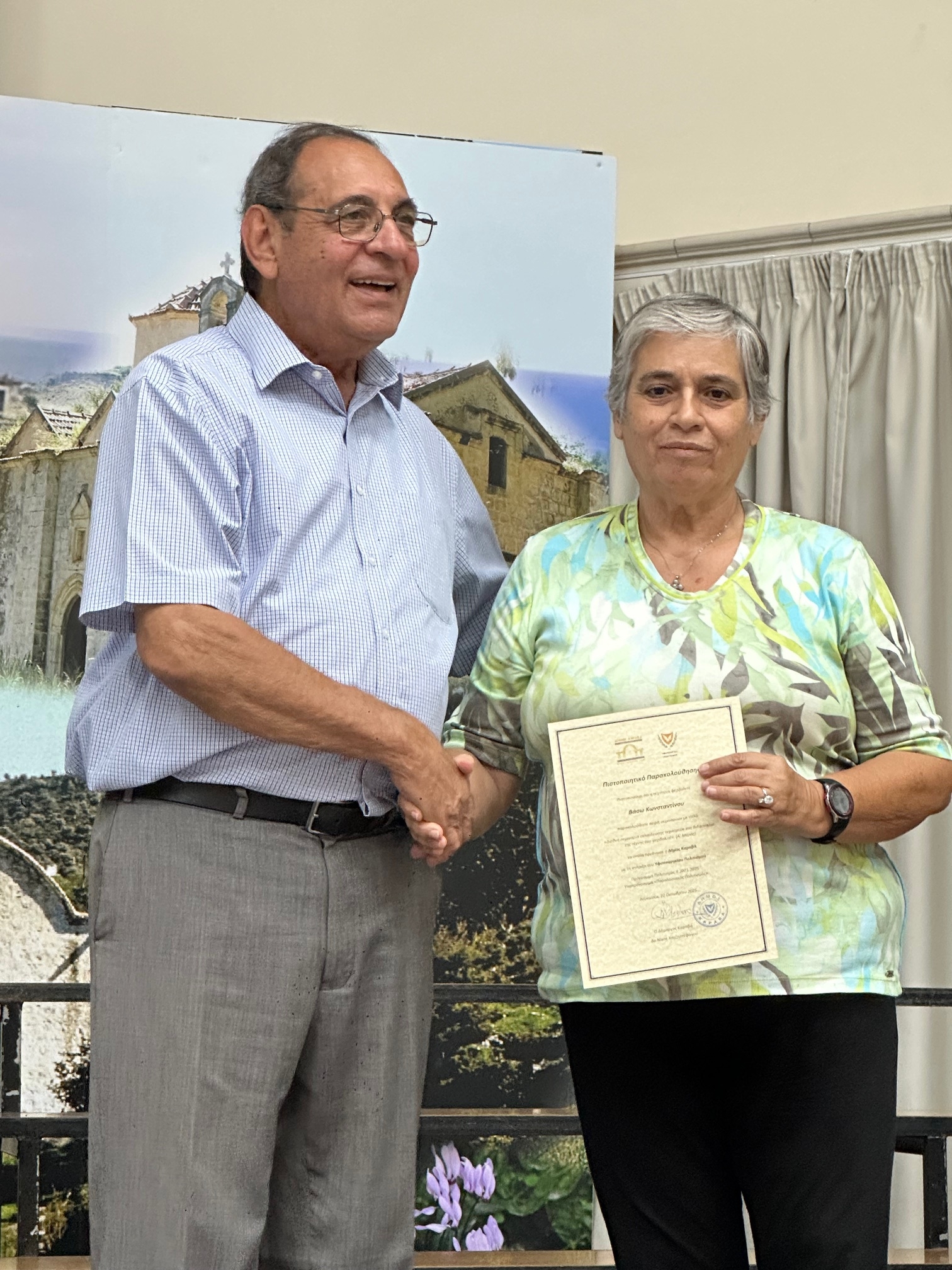 Μετά την ολοκλήρωση των εργασιών, πραγματοποιήθηκε τελετή απονομής Πιστοποιητικών Παρακολούθησης από τον Δήμαρχο Καραβά, Δρ Νίκο Χατζηστεφάνου, στις κυρίες που συμμετείχαν στα σεμιναρίων. Ο Δήμαρχος εξέφρασε θερμές ευχαριστίες προς τις εκπαιδεύτριες, το προσωπικό του Δήμου και όλους όσοι συνέβαλαν στην επιτυχή διοργάνωση, επισημαίνοντας τη σημασία της συλλογικής προσπάθειας για τη διατήρηση της πολιτιστικής μας κληρονομιάς.