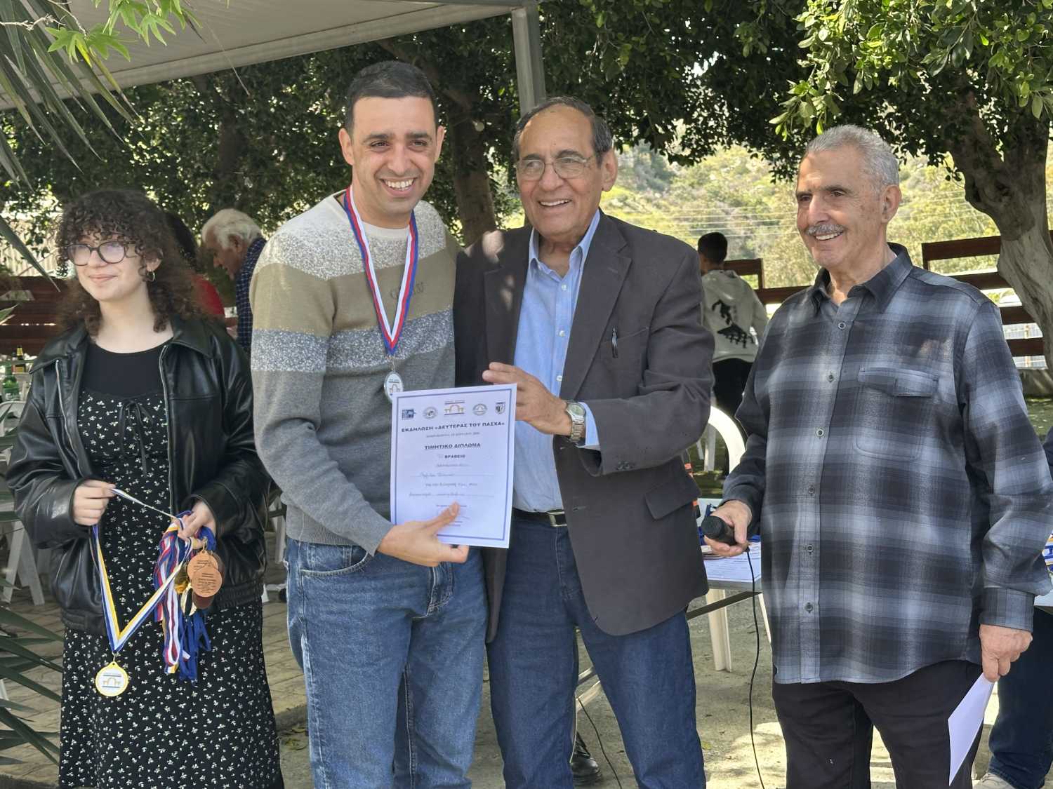 Χαιρετισμό απηύθυναν ο συντονιστής της εκδήλωσης και Αντιδήμαρχος Καραβά, Πανίκος Μανώλη, και ο Δήμαρχος Καραβά, Νίκος Χατζηστεφάνου, ο οποίος μετέφερε τις πασχαλινές ευχές του Δήμου προς όλους τους δημότες, εκφράζοντας παράλληλα την ελπίδα για την απελευθέρωση της πατρίδας μας. Παράλληλα, αναφέρθηκε στην έναρξη των εργασιών συντήρησης της εκκλησίας του Αγίου Γεωργίου του Μεζερέ στον Καραβά, έργο που υλοποιείται από τη Δικοινοτική Επιτροπή Πολιτιστικής Κληρονομιάς και ευχήθηκε όπως του χρόνου διοργανώσουμε την πασχαλινή συνεστίαση στον Άγιο Γεώργιο του Μεζερέ, σε ένα ελεύθερο Καραβά.