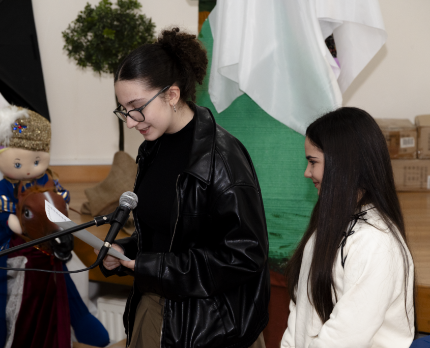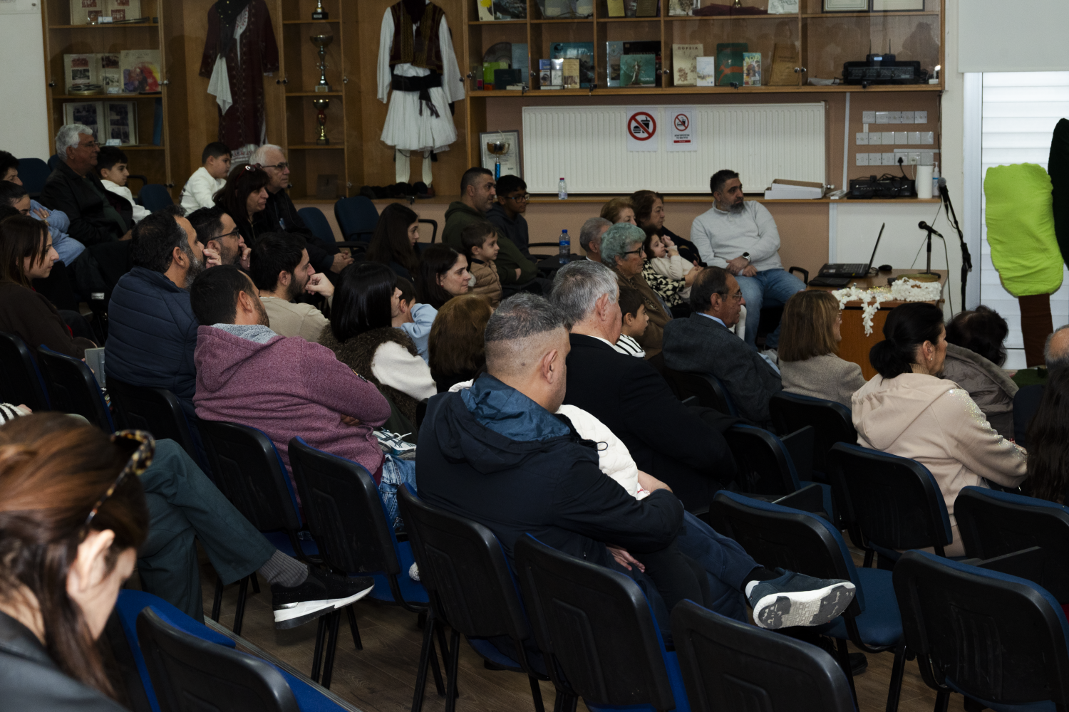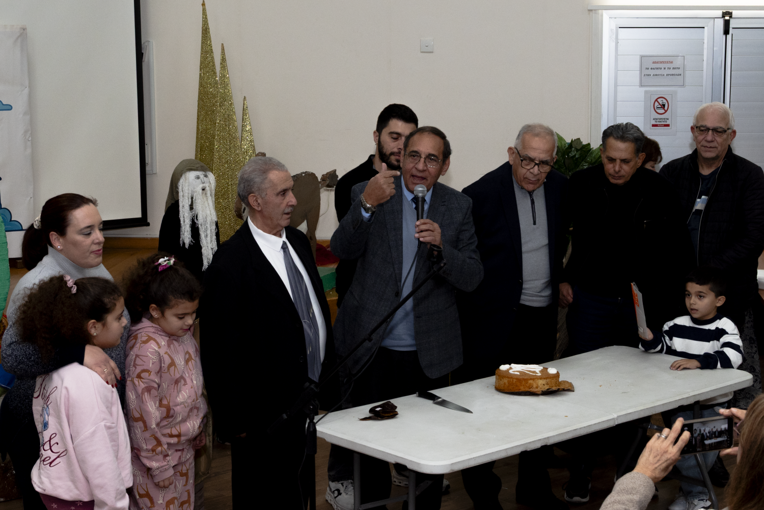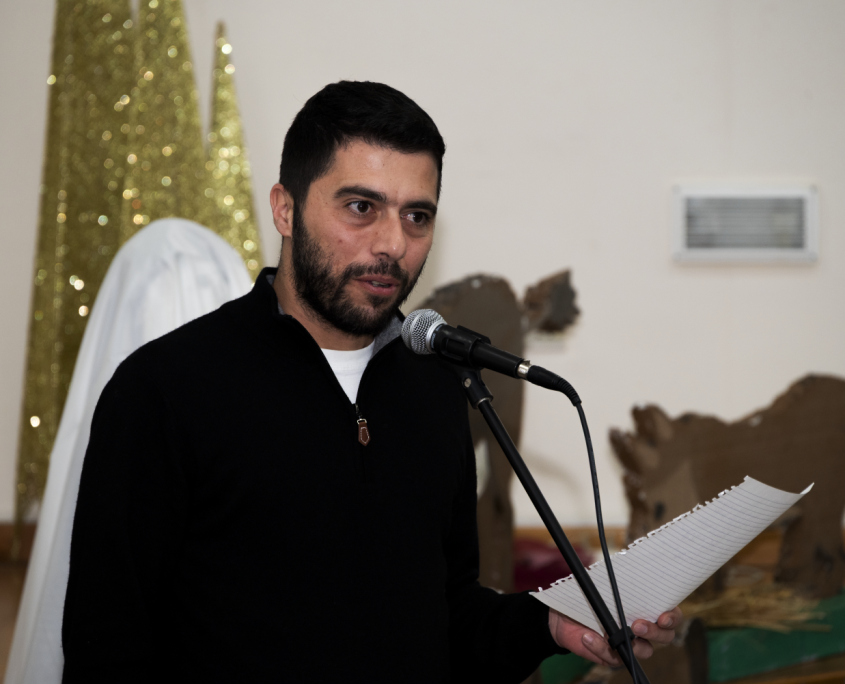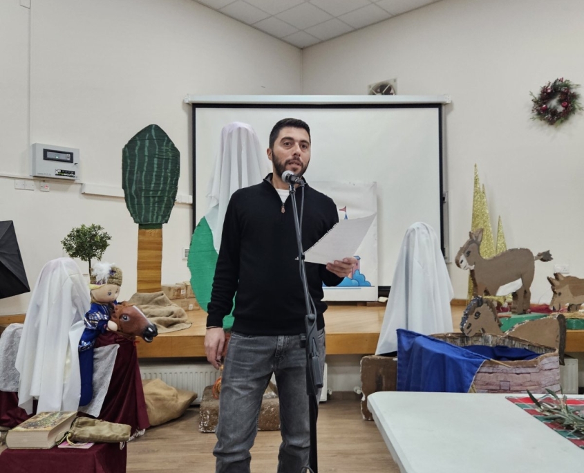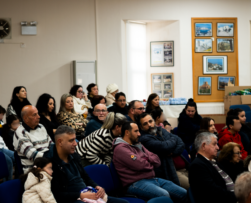 Ιδιαίτερα συγκινητική ήταν η απαγγελία χριστουγεννιάτικου ποιήματος από τις μικρές Καραβιώτισσες Αντριάνα και Σοφία Μανώλη, οι οποίες με απλότητα και ευαισθησία μετέφεραν στο κοινό το πνεύμα των ημερών. Στη συνέχεια, η συνταξιούχα δασκάλα Κωνσταντίνα Πισιαλή παρουσίασε τα χριστουγεννιάτικα έθιμα του Καραβά, ταξιδεύοντας μικρούς και μεγάλους στο παρελθόν και θυμίζοντας τις παραδόσεις που χαρακτήριζαν τις γιορτινές μέρες στον κατεχόμενο σήμερα τόπο μας.