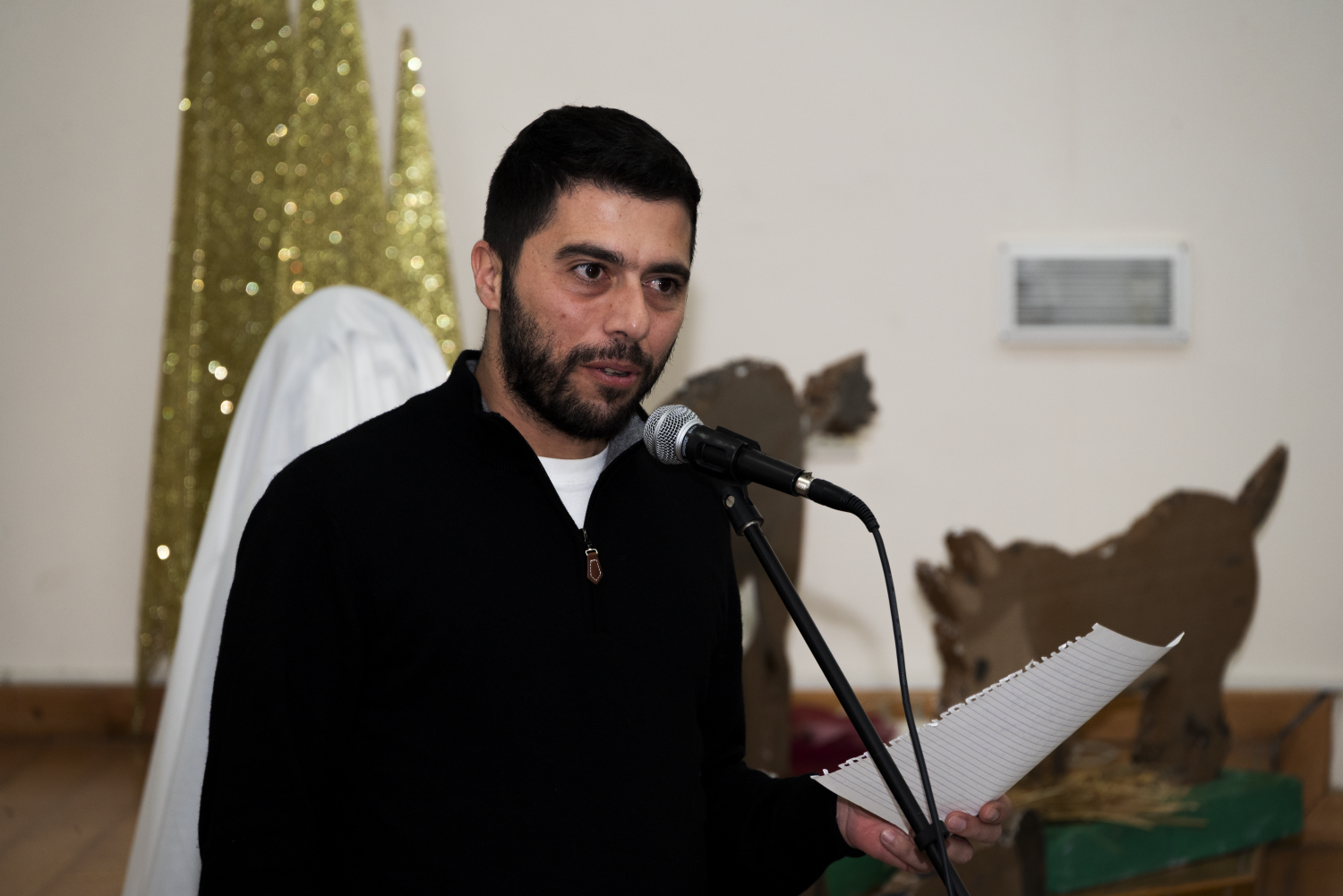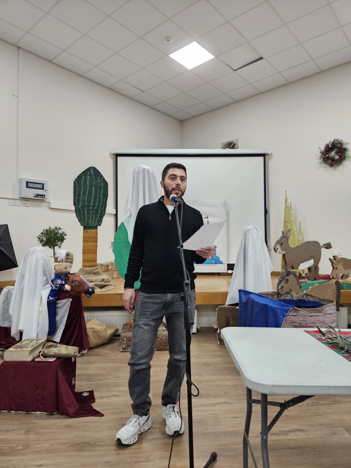 Το πρόγραμμα άνοιξε με το καλωσόρισμα του Συντονιστή της εκδήλωσης και Αντιδημάρχου Καραβά, ο οποίος τόνισε τη σημασία τέτοιων εκδηλώσεων για τη διατήρηση της πολιτιστικής ταυτότητας και της ιστορικής μνήμης του Καραβά. Ακολούθησε χαιρετισμός από τον Δήμαρχο Καραβά, ο οποίος αφού ευχαρίστησε όλους όσοι συνέβαλαν στη διοργάνωση της εκδήλωσης και ιδιαίτερα τον Αντιδήμαρχο, αναφέρθηκε στο διαχρονικό μήνυμα των Χριστουγέννων, την ανάγκη να κρατούμε ζωντανή τη μνήμη των κατεχόμενης γης και να μεταλαμπαδεύουμε στη νέα γενιά τις παραδόσεις, τα ήθη του τόπου μας και την αγάπη για τον Καραβά, ώστε να ενισχυθεί ο αγώνας μας για ελευθερία, δικαίωση και επιστροφή σε ένα ελεύθερο Καραβά. Χαιρετισμό στην εκδήλωση απεύθυνε επίσης ο Πρόεδρος του Προσφυγικού Σωματείου «Ο Καραβάς», ο οποίος υπογράμμισε τον σημαντικό ρόλο του Σωματείου στη διατήρηση της ιστορικής μνήμης, της πολιτιστικής κληρονομιάς και της ενότητας των Καραβιωτών, ιδιαίτερα μέσα από δράσεις που απευθύνονται στα παιδιά. Τόνισε, παράλληλα, τη σημασία της συνεργασίας με τον Δήμο Καραβά, ευχαριστώντας όλους όσοι εργάστηκαν για την επιτυχή διοργάνωση της εκδήλωσης, και ευχήθηκε σε όλους καλή χρονιά με υγεία, ελπίδα και πίστη στον κοινό στόχο της επιστροφής σε έναν ελεύθερο Καραβά.